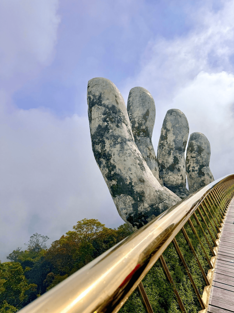 - Completed in 2018, the Golden Bridge is a 150-meter-long pedestrian bridge supported by two massive stone-like hands that appear to rise from the mountainside.